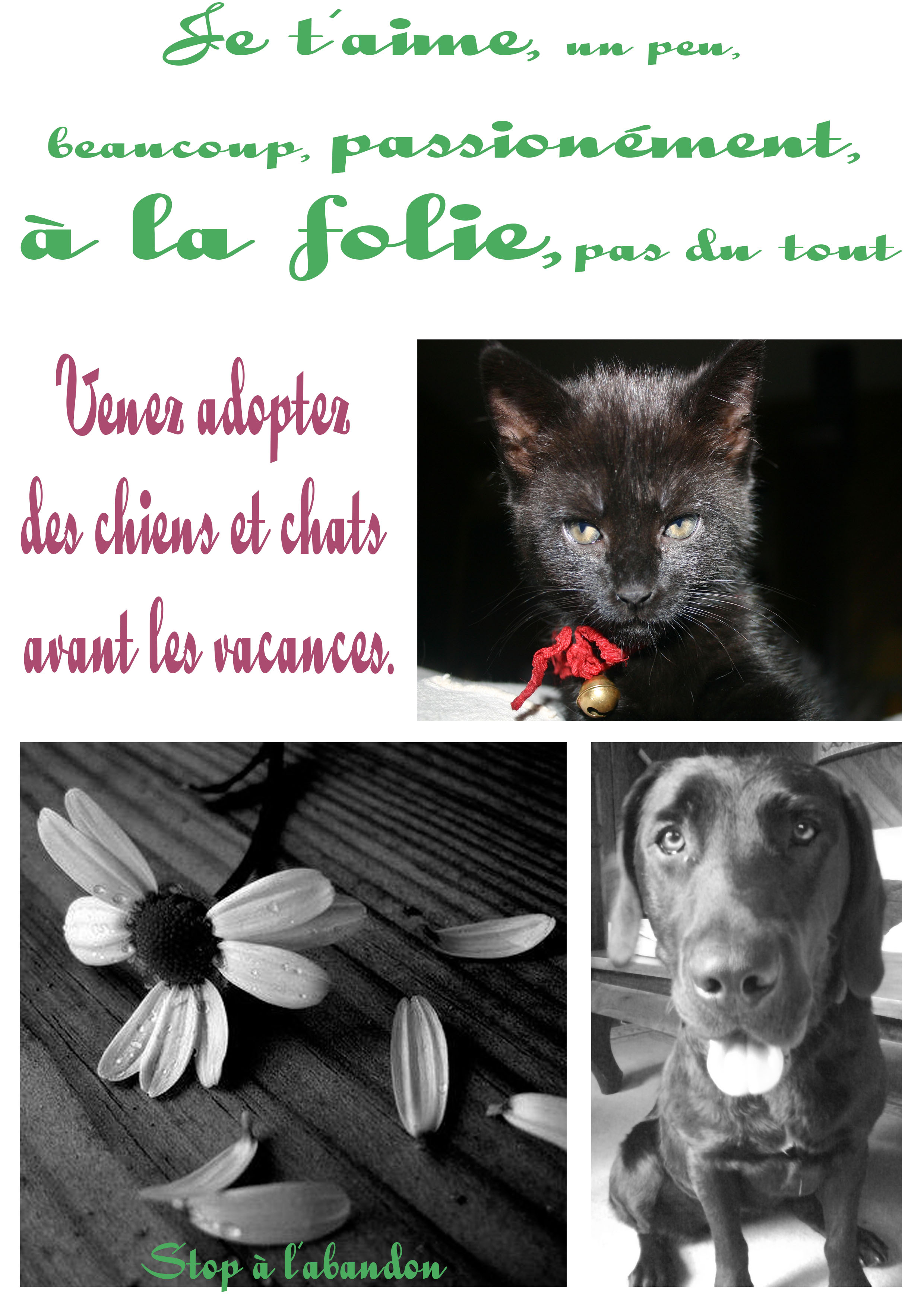 pour rencontrer des chiens et des chats prêts à vous adopter. Contrairement à l’homme, l’animal n’abandonne jamais, redonnez une chance à ces compagnons !